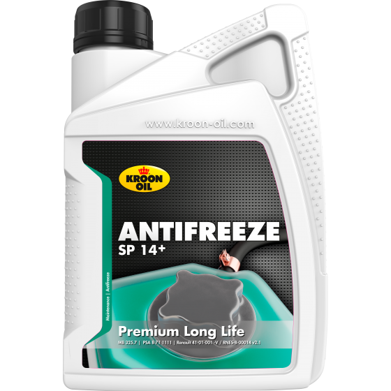 Az Antifreeze SP 14+ modern zöld/kék fagyálló, amely különféle japán és koreai modellek modern hűtőrendszereiben használható. A termék alkalmas a Stellantis-csoport (beleértve a PSA-t, Fiatot, Alfa Romeót, Lanciát, Opelt) és a Renault-csoport (beleértve a Dacia-t, Nissant és Mitsubishi-t) különféle modelljeihez is. Ellenőrizze a termékajánlási adatbázisunkat a www.kroon-oil.com oldalon, hogy megtudja, ez a termék alkalmas-e az Ön járművéhez. Használat előtt hígítsa demineralizált vízzel.